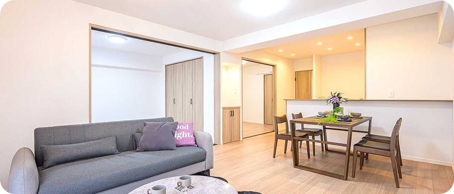 区分所有マンションを自社一貫体制で仕入れ・リノベーション・販売する、創業時から磨き上げたレジデンシャル不動産の基幹事業です。
