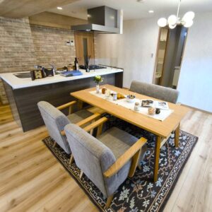 クラシカルな柄のラグを取り入れ、ナチュラルな空間にアクセントをプラス。