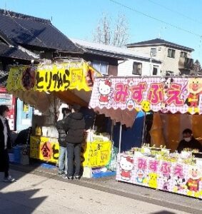 - 屋台や露店:神社周辺にはお正月の雰囲気を盛り上げる屋台や露店が立ち並び、甘酒やお守り、縁起物などを販売しています。