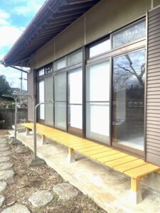傷みが見られた縁台を、新しいものへと交換しました。