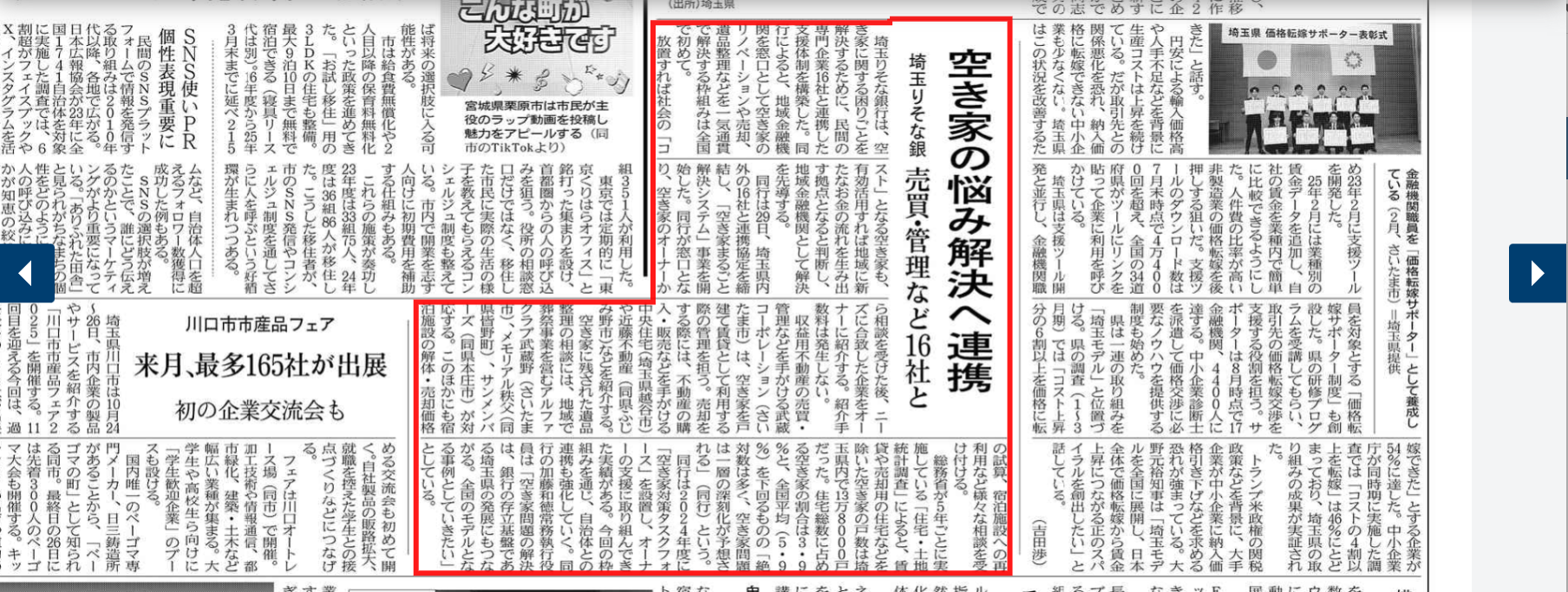 この度、埼玉りそな銀行(本社:埼玉県さいたま市、代表取締役社長:福岡 聡)が提供を開始する「空き家まるごと解決システム」において、連携協定締結企業の一社として参画いたしました。