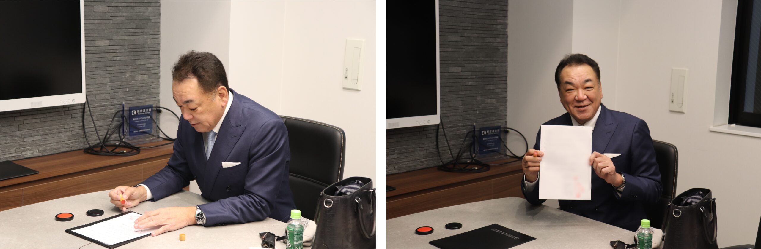 当日は、契約書への押印手続きが行われ、槙原様からは「読売巨人軍依頼の押印シーンを撮影してもらっています」といった、和やかな言葉を交えながら終始温かい雰囲気で手続きが進みました。