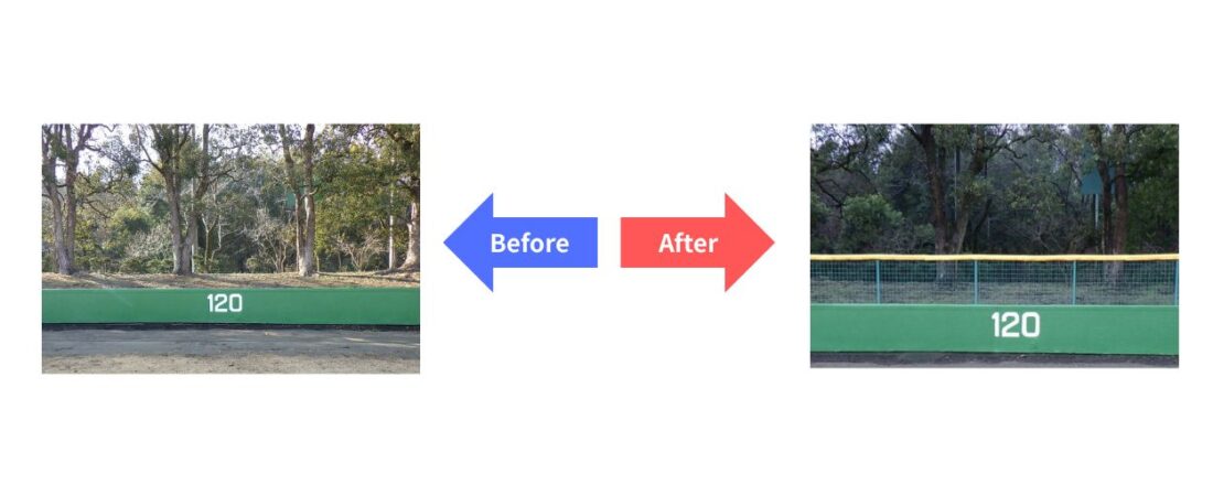 あきる野市民球場のホームランフェンスの改修が完了しました