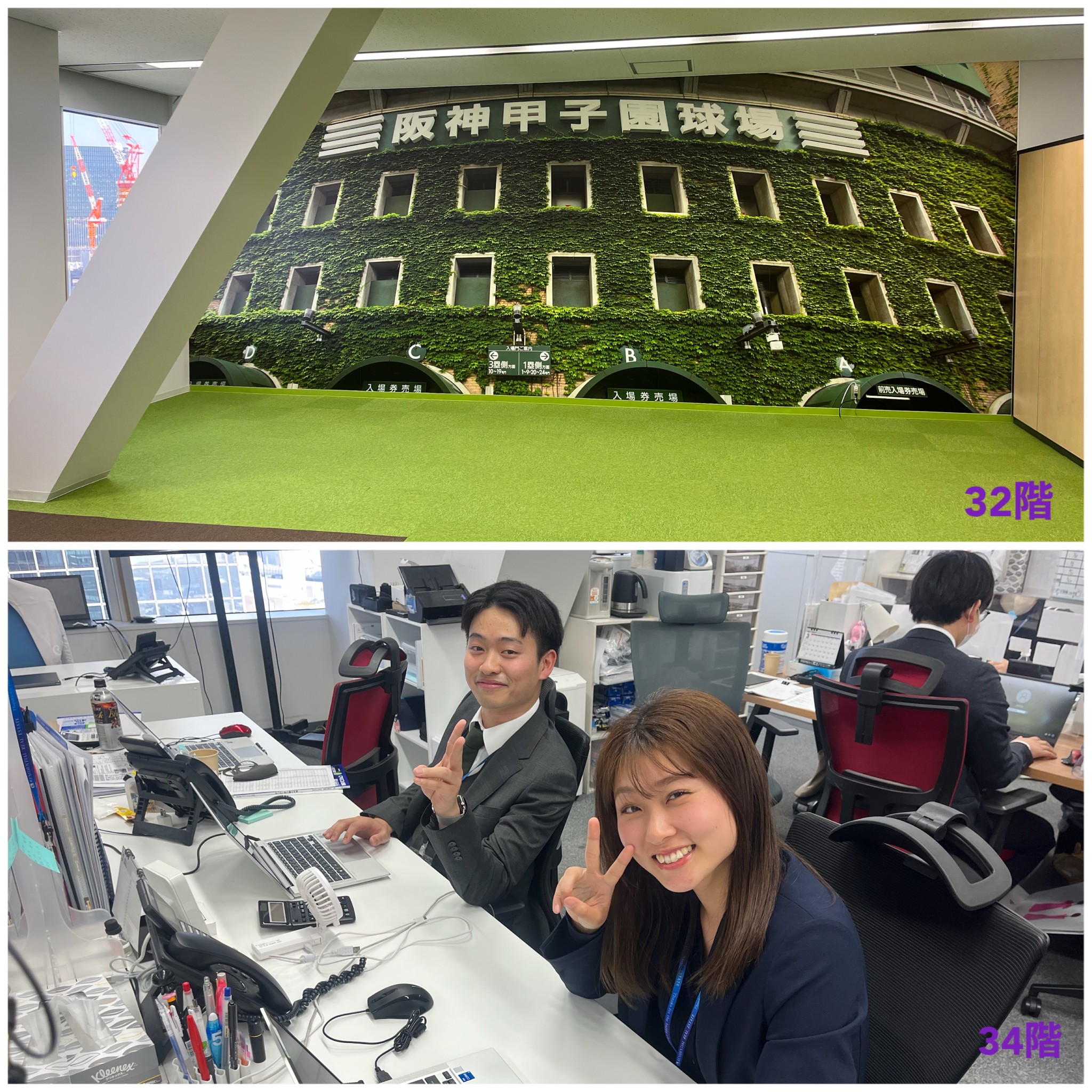 インパクト絶大のフロア写真と34階にいる素敵な笑顔の先輩方のお写真がこちらです♪