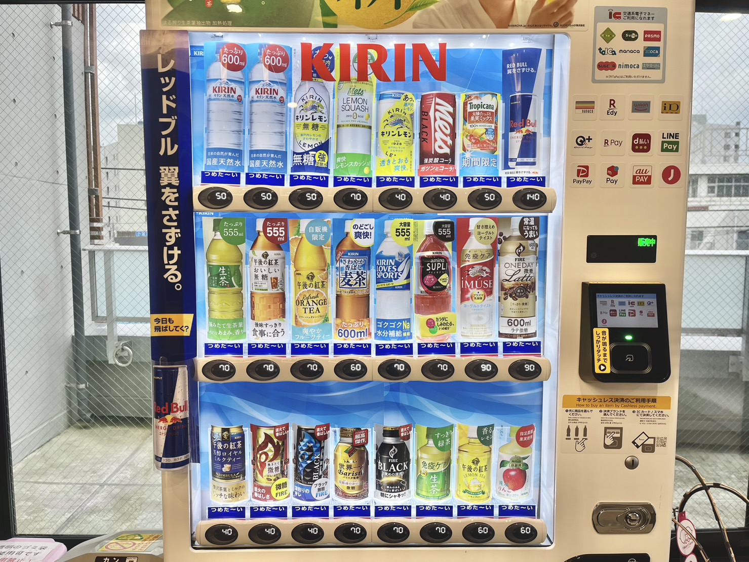なんとお水は50円、キリンレモンは40円、レッドブルは140円と、とってもお手頃価格です😲